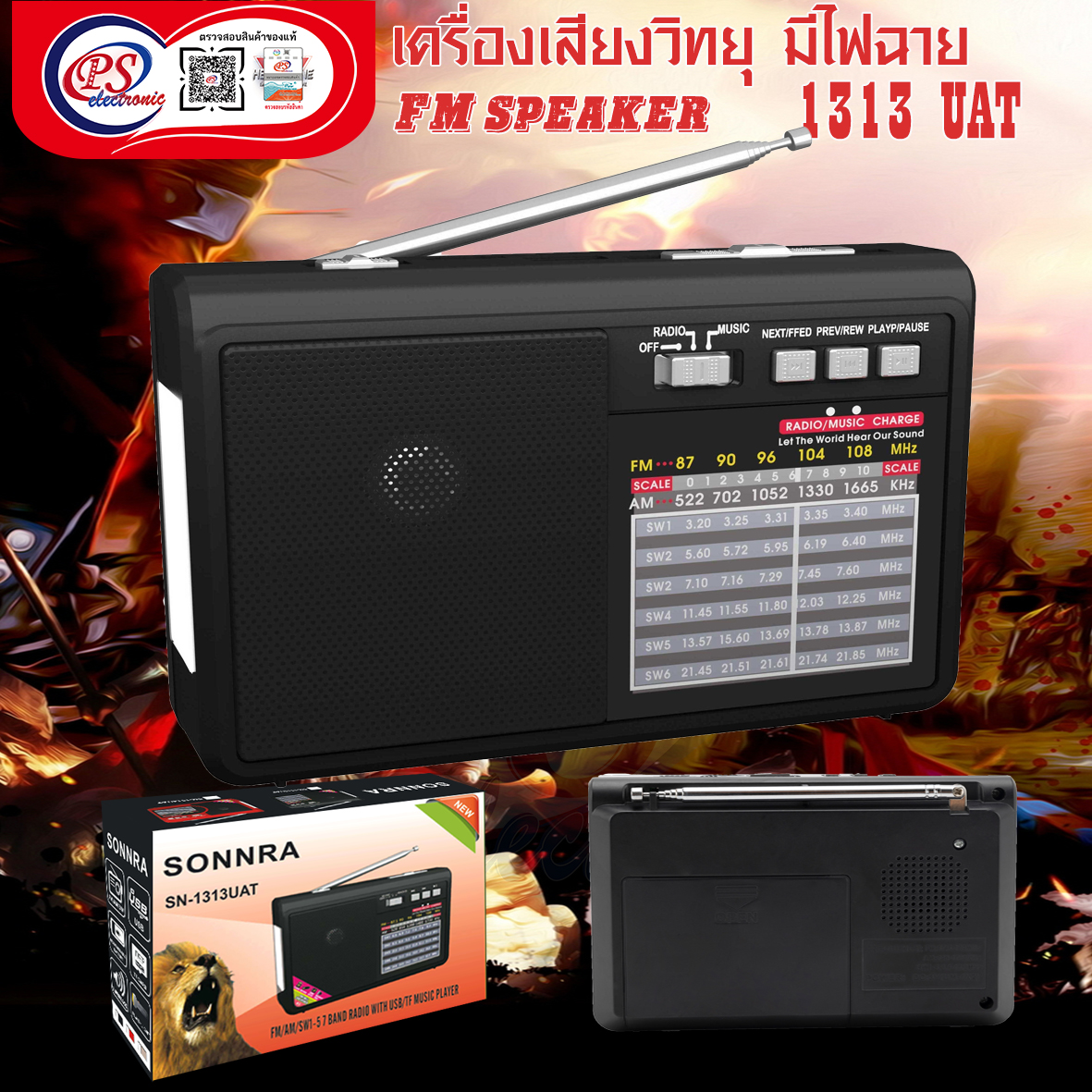 รับสัญญาณ วิทยุ AM /FM / SW พร้อม MP3 PLAYER เล่นเพลงจาก TF /SD CARD /USB /AUX